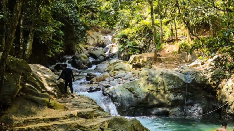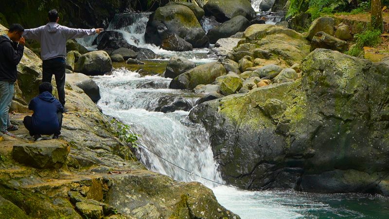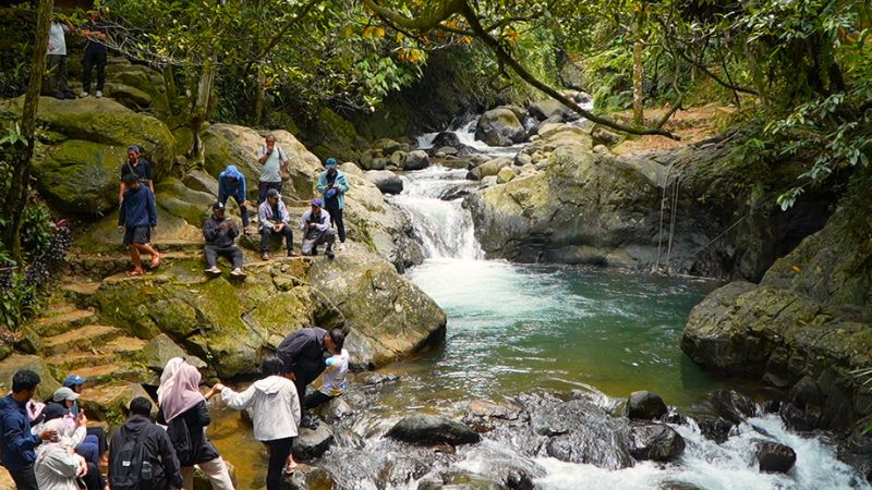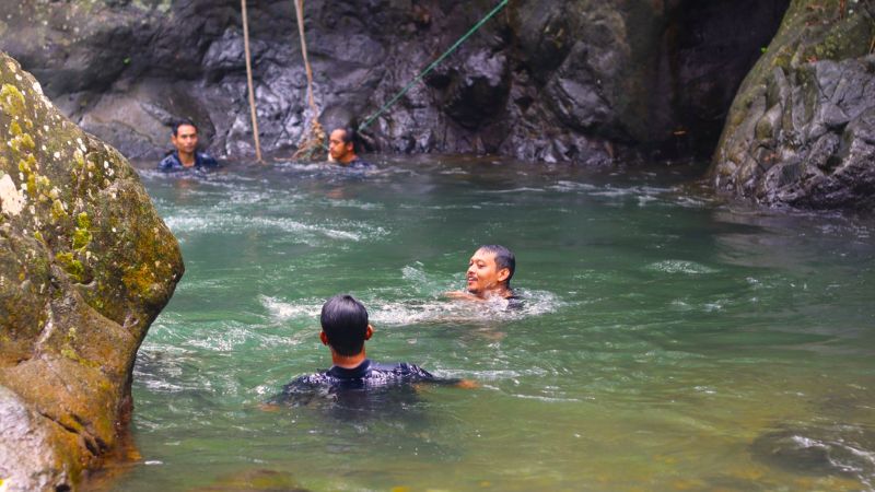 Selain itu, area Curug Kencana memiliki aliran air yang jernih dan kolam alami yang relatif aman untuk bermain air. Hal ini menjadi nilai tambah karena peserta tidak hanya berjalan menyusuri jalur trekking, tetapi juga mendapatkan pengalaman relaksasi di air terjun.
