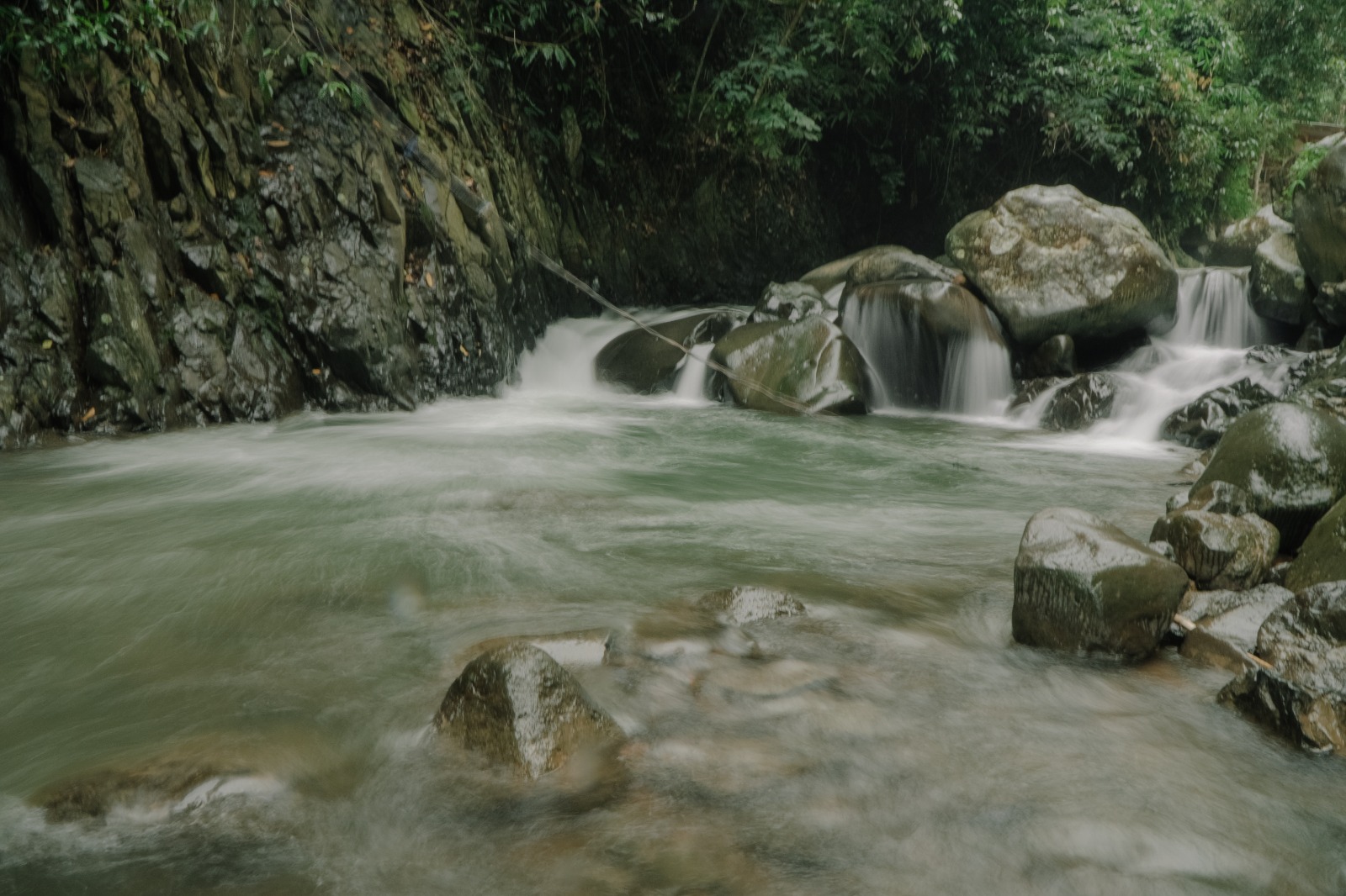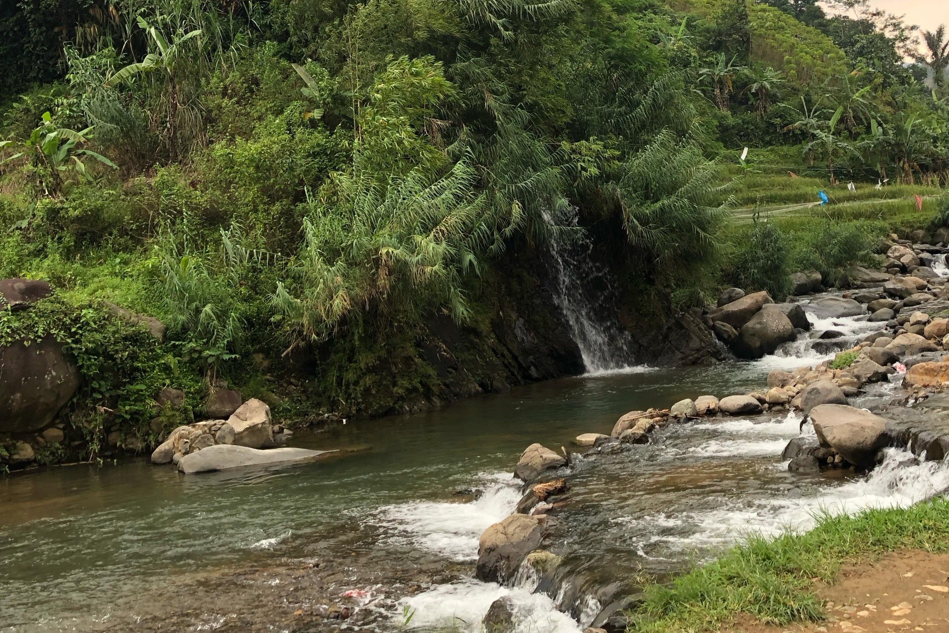 Perjalanan dilanjutkan melewati perkebunan warga dan jalur sungai hingga tiba di Leuwi Asih. Peserta dapat beristirahat, berfoto, berenang, dan menikmati suasana alam yang menyegarkan.